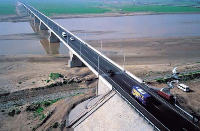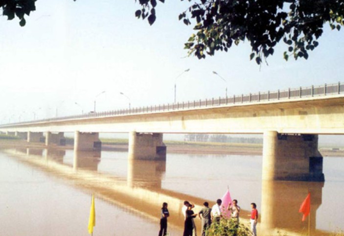 位于市南郊,它是從包頭市白云鄂博到陜西等省通衢的重要組成部分。大橋全長810米,主孔12孔,每孔跨徑為65米,橋面寬12米,下部由14墩臺組成,上部構造為預應力鋼筋混凝土箱式連續(xù)梁,采用最新工藝多點頂推法施工。上部結構為3聯4孔65米預應力鋼筋混凝土連續(xù)箱梁,跨徑組合為3*(4*65)+20米,1983年建成通車,是黃河中上游最大的橋梁之一。設計荷載汽車—20級;拖車—100級。