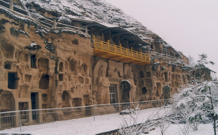 窟龕因崖面自然形態(tài)分為上下兩層,以回廊石階貫通,布局有制,層次分明。特別是165洞窟高達(dá)14米,深15.7米,寬21.7米,規(guī)模宏大,全國罕見。文物保存完整,內(nèi)容豐富,其歷史、藝術(shù)、科學(xué)、旅游價值很高。是世界石窟藝術(shù)的珍品,這里背山面水,自然風(fēng)景典雅秀麗。春天姹紫嫣紅,鳥語花香;夏日泉水叮咚,涼風(fēng)習(xí)習(xí);秋季霜葉爛漫,碩果累累;冬至瑞雪紛飛,幽靜而壯觀,人文景觀獨(dú)特。石窟分上中下三層,其中以奚康生創(chuàng)建的一百六十五號窟為最大,它是以七佛為內(nèi)容的大型窟。七佛造像宏偉精湛,莊嚴(yán)肅穆,不失北魏造像的光彩和魅力。伴之七佛而雕造的彌勒菩薩、騎像菩薩、手持日月的阿修羅都是富有藝術(shù)感染力的成功作品。除此而外,還有240號窟的北周造像,顯示了敦樸厚重的風(fēng)度。北石窟寺以唐代窟最多,最有代表性的是建于武則天如意元年(公元692年)的32號窟??邇?nèi)的大小雕像面容豐腴,秀目含情,飄然欲動,姿態(tài)動人,堪稱盛唐藝術(shù)精品,唐代造像在藝術(shù)上達(dá)到了新的成就??邇?nèi)還保存著隋、唐、宋、金、西夏、元等各代的題記150多則,是研究歷史、書法的珍品。題記確切記載了石窟的開鑿年代,為研究歷代社會生活和發(fā)展變化,提供了很有價值的文字資料。這些綿亙千余年的雕刻藝術(shù),凝結(jié)著勞動人民的智慧,是古代藝術(shù)匠師們辛勤勞動的結(jié)晶。為我們留下了豐富的精神財富?!”笔咚乱运聹系目啐愖顬榧?,共編號 282個,窟群開鑿在高20米、寬 120余米的覆鐘山崖壁上,窟龕上下重疊多達(dá)3層。面向西,因周圍山崖石質(zhì)屬早白堊紀(jì)黃砂巖,砂質(zhì)均勻,膠結(jié)性能較好。造像可分為圓雕、半圓雕和浮雕等幾種。以北魏和唐代的最為精美。原窟龕內(nèi)均有彩繪壁畫或圖案裝飾,現(xiàn)絕大多數(shù)已剝落無存。