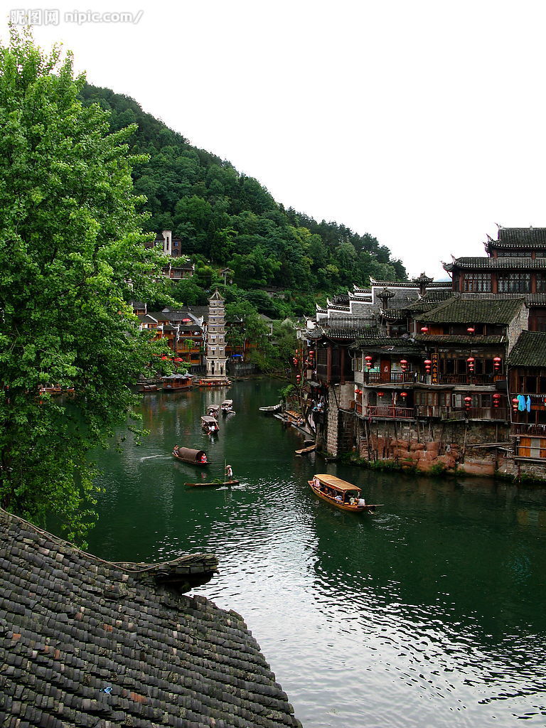 沱江河是鳳凰的母親河,她依著城墻緩緩流淌,世世代代哺育著古城兒女。坐上烏船,聽著艄公的號子,看著兩岸已有百年歷史的土家吊腳樓,別有一番韻味。 順?biāo)?,穿過虹橋一幅江南水鄉(xiāng)的畫卷便展現(xiàn)于眼前:萬壽宮、萬名塔、奪翠樓……一種遠(yuǎn)離塵世的感覺悠然而生。沱江的南岸是古城墻,用紫紅沙石砌成,典雅不失雄偉。城墻有東、北兩座城樓,久經(jīng)滄桑,依然壯觀。沱江河水清澈,城墻邊的河道很淺,水流悠游緩和,可以看到柔波里招搖的水草,可以撐一支長篙漫溯。 沿沱江邊而建的吊腳樓群在東門虹橋和北門跳巖附近,細(xì)腳伶仃的立在沱江里,象一幅永不回來的風(fēng)景。