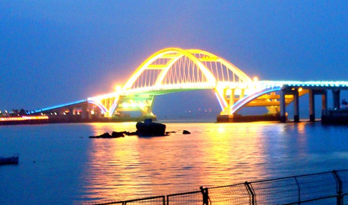 從東渡港牛頭山跨過(guò)火燒嶼,到海滄石塘的排頭門,架起了一座亞洲第一的海滄大橋,營(yíng)造出廈門一處新的景觀。