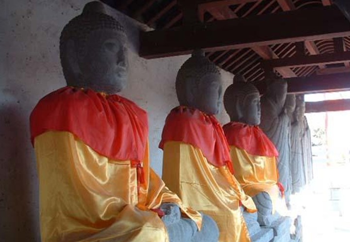 1962年,在石佛前田中發(fā)現(xiàn)石質(zhì)佛座1塊,龕長36厘米,寬35厘米,厚11厘米,刻“大齊天統(tǒng)元年歲次丁亥四月一日辛丑朔比丘?曇進兄弟二人敬造”。天統(tǒng)元年為公元565年。1977年又在寺院舊址中出土1塊高浮雕一佛二菩薩造像碑,系青石質(zhì),呈蓮瓣形,頂端左右雕有飛天6個,中間石佛像高65厘米,其兩側(cè)菩薩像各高47厘米。造像屬唐代風(fēng)格,當(dāng)屬寺內(nèi)舊物,現(xiàn)存于臨淄區(qū)文物管理所內(nèi)。1984年7月公布為市級重點文物保護單位。石佛堂北魏石佛 在臨淄區(qū)城關(guān)鎮(zhèn)石佛堂村北側(cè)有殘破佛堂3間,系磚、石、木結(jié)構(gòu),灰瓦覆頂,一門二窗,內(nèi)飾壁畫,立有石佛4尊。堂室中央置彌勒佛1尊,高1.14米,寬0.45米,厚0.24米,背倚刻有40個佛像的石屏;西間石佛3尊,缺首,雕在一塊蓮瓣狀石屏上,石屏刻有35個佛像,其上端左右雕立式飛天和蟠龍,結(jié)構(gòu)謹嚴(yán),組為一體。