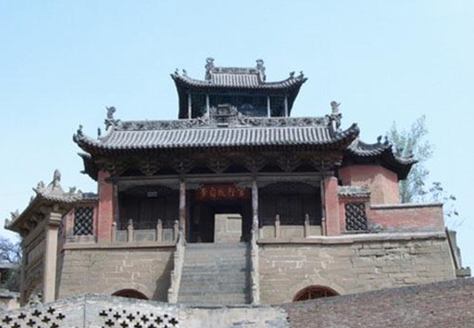 后院有玉皇殿,規(guī)模、結構可與碧霞元君殿媲美,唯明廊東西兩壁各嵌有造像石刻1方,描繪佛門暮鼓晨鐘參禪拜佛故事。殿前有一方影壁,須彌座,壁柱以青石砌成,四角敷以三角形浮雕云龍石,中間綴以菱形石,上刻一大“佛”字。東西配殿各3間,分別為三圣祠和八仙堂。
