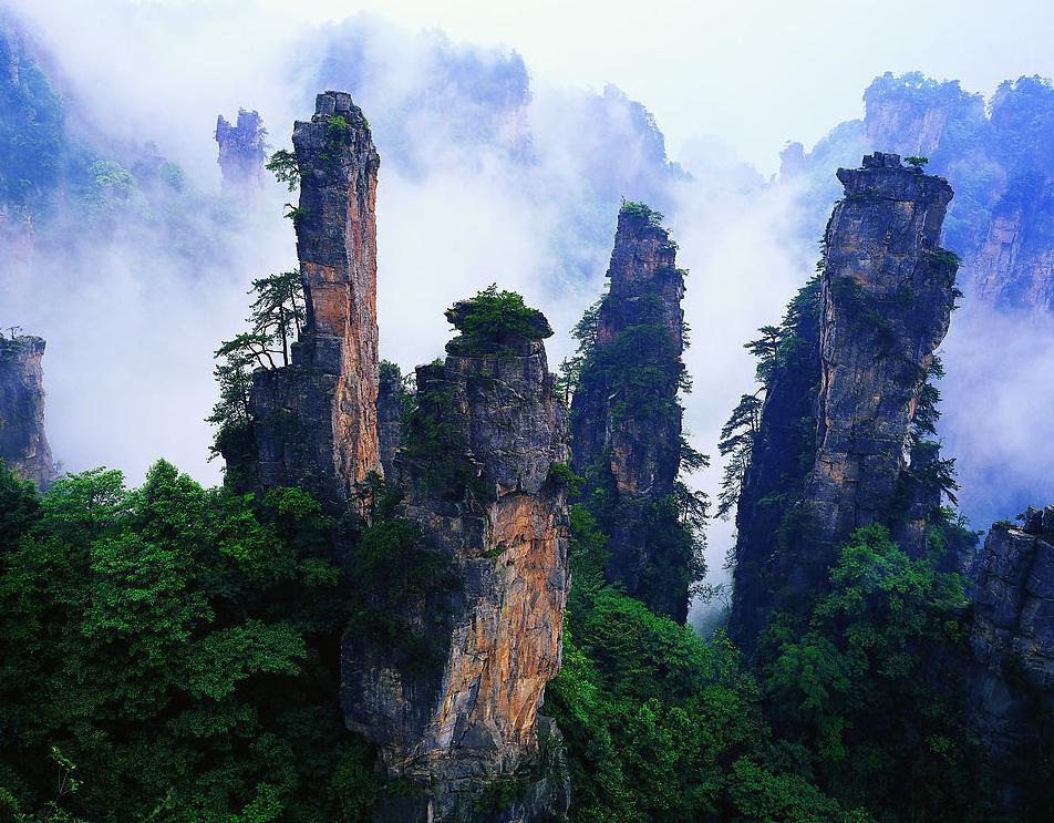 天子山不但險絕,且給人神秘幽靜之感,尤以石林奇觀聞名遐邇。無數(shù)石峰如劍如戟,森然列于其間,更似千軍簇擁,氣勢雄渾無媲。覽勝之間,令人遐思無限,不得不驚嘆造物者的鬼斧神工。