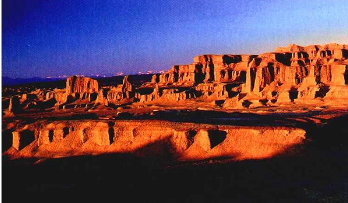 克拉瑪依市北行100公里,在烏爾禾鄉(xiāng)東南三公里,有一處獨特的風蝕地貌,定名為風城,人們習慣稱它為 “魔鬼城”。“魔鬼城”是一片雅丹地貌,面積10平方公里,地面海拔350米左右。