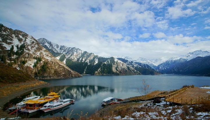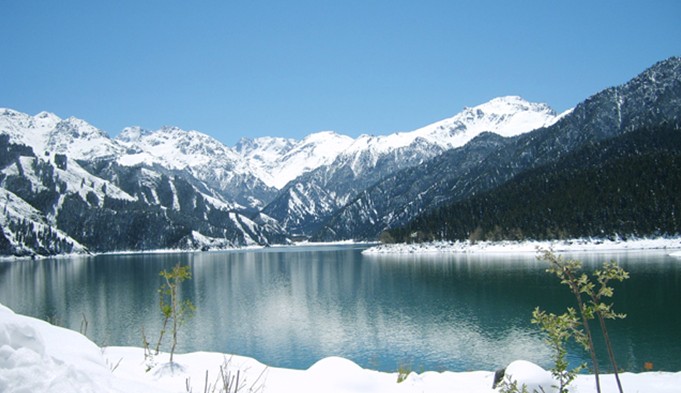 天池東南面就是雄偉的博格達主峰(蒙古語“博格達”,意為靈山、圣山)海拔達5445米。主峰左右又有兩峰相連。抬頭遠眺,三峰并起,突兀插云,狀如筆架。峰頂?shù)谋ǚe雪,閃爍著皚皚銀光,與天池澄碧的湖水相映成趣,版權(quán)所有山東聊城聊之旅國際旅行社有限公司,轉(zhuǎn)載必究!構(gòu)成了高山平湖綽約多姿的自然景觀。