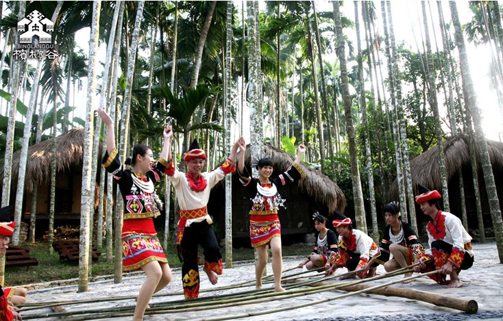 黎族是海南的土著民族,這里當(dāng)然保存著最原始、最淳樸的黎族風(fēng)情。拉龜、射箭、蕩秋千、攀藤摘花、挑山欄過河、過獨(dú)木橋等體育項(xiàng)目,鼻蕭、椰烏、吹樹葉等樂器表演,唱歌、跳竹竿舞等娛樂項(xiàng)目,射魚、貴屋等生活方式,織錦等手工技能無(wú)不體現(xiàn)了濃郁的少數(shù)民族風(fēng)情。