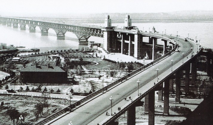 1967年8月15日大橋合龍。時為南京軍區(qū)司令員的許世友,曾調(diào)來約百輛坦克同時開過橋面,以檢驗大橋質(zhì)量。
