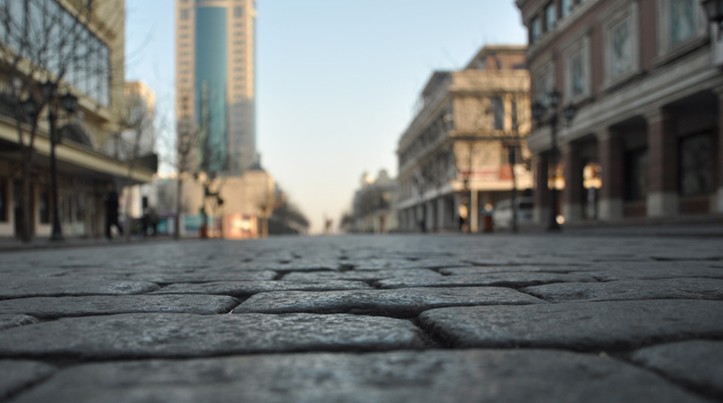 中央大街全長1450米,寬21.34米,其中馬路方石路寬10.8米。最具特色的就是整條街由方石鋪成。1924年5月,俄國工程師科姆特拉肖克設(shè)計并監(jiān)工,為“中國大街”鋪上了花崗巖石塊,寬度為10沙繩,沙繩是俄制度量單位:1沙繩等于2.134米。鋪路用的方石塊每塊長18厘米、寬10厘米,其形狀大小就像俄式的小面包一樣,石面呈渾圓型,精巧、密實、光亮、圓潤,在中外道路史上極為罕有。據(jù)說,當時的一塊方石價錢相當于一塊銀元。“中國大街”足有1公里長,粗略算下來,整條街大約鋪有方石87萬塊,真可謂是黃金鋪路。