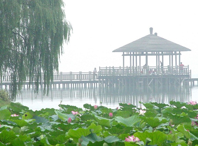 三為菱洲,洲東瀕臨鐘山,有“千云非一狀”的鐘山云霞,故有“菱洲山嵐”的美名。四為梁洲,梁洲為五洲中開(kāi)辟最早、風(fēng)景最勝的一洲。一年一度的菊展,傳統(tǒng)而壯觀,故有“梁洲秋菊”的美譽(yù)。五為翠洲,翠洲風(fēng)光幽靜,別具一格。長(zhǎng)堤臥波 ,綠帶燎繞。蒼松、翠柏、嫩柳、淡竹,構(gòu)成“翠洲云樹(shù)”特色。