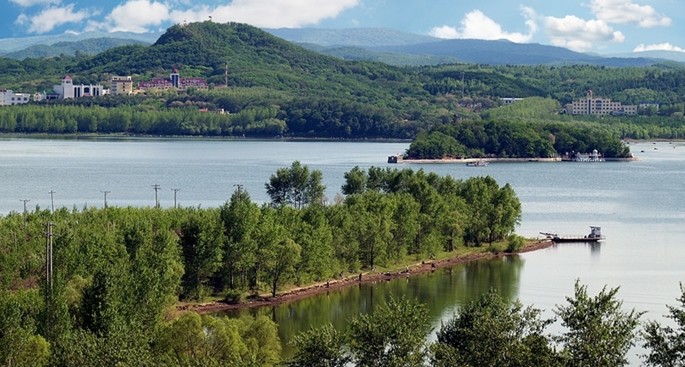二龍山是國家AAAA級(jí)旅游區(qū),位于哈爾濱市東50公里處,東經(jīng)127度27分41秒,北緯45度45分59秒,坐落在古城賓州西南。景區(qū)占地25平方公里,一湖碧水,三面環(huán)山,自然風(fēng)光,美不勝收。這里既有二龍戲珠、長龍臥波、銀峰插翠、碧波唱晚等十大麗景,又有寶島飛虹、湖面飛魚等四大奇觀。是消暑、度假、休閑、療養(yǎng)的好地方,年接待中外游客近百萬人次。