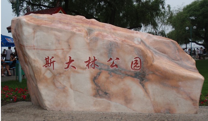 斯大林公園是松花江畔避暑游覽地之一,與太陽島隔江相望。建于1953年,原名"江畔公園"。全長1750米,是順堤傍水建成的帶狀形開放式公園,占地面積10.5萬平方米。 公園以防洪紀(jì)念塔為中心,以仿造俄羅斯古典式建筑風(fēng)格和遍布全園的“五色草花壇”,以及分布在綠地之間的“天鵝展翅”、“三少年”、“起步”、“跳水”、“舞劍”等十六組藝術(shù)雕塑而馳名海內(nèi)外。