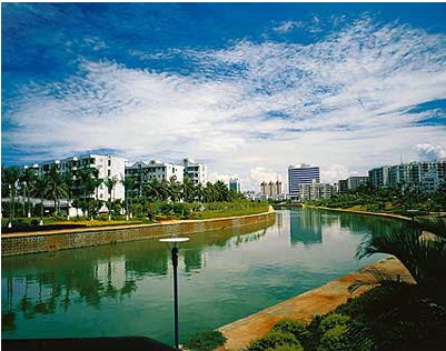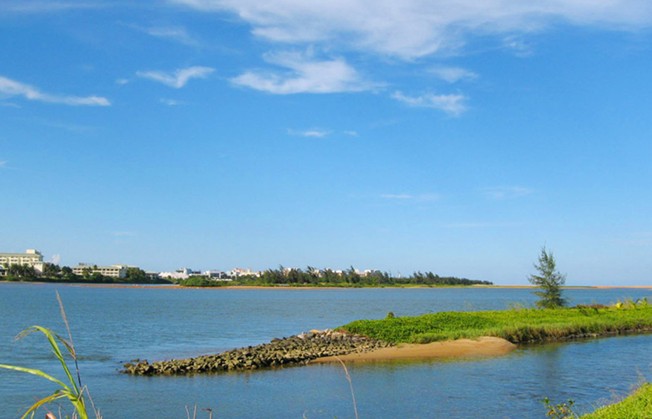 這里風光更為迷人。集三河(萬泉河、龍滾河、九曲江)、三島(東嶼島、沙坡島、鴛鴦島)、兩港(博港、潭門港)、一石(砥柱中流的圣公石)等風景精華于一地,兩道天然沙堤猶如巨臂總攬一懷秀色。出??诩扔泻K?、沙灘、紅礁、林帶,又有明媚陽光、新鮮空氣、清柔流泉,是目前世界河流出??谧匀伙L光保護最好的地區(qū)之一。