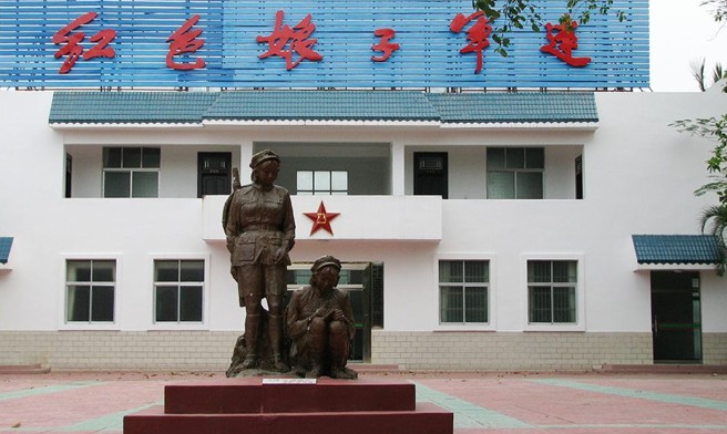 “紅色娘子軍紀念園”是為紀念第二次國內(nèi)革命戰(zhàn)爭時期誕生的“中國工農(nóng)紅軍第二獨立師女子軍特務(wù)連”而建造的文化旅游區(qū)。位于瓊海市加積鎮(zhèn)街心公園,雕像由花崗石雕刻而成,坐北向南,高3.7米,連底座總高6.8米。座基石板鋪設(shè),四周呈六角形,圍以石欄桿,占地面積40平方米。雕像后面是園林花圃等。雕像將紅軍女戰(zhàn)士腳穿草鞋、肩背竹笠,風塵仆仆的一代巾幗英雄的氣概充分展現(xiàn)。