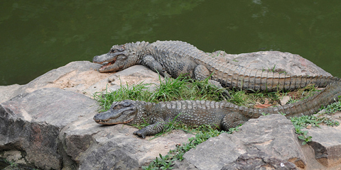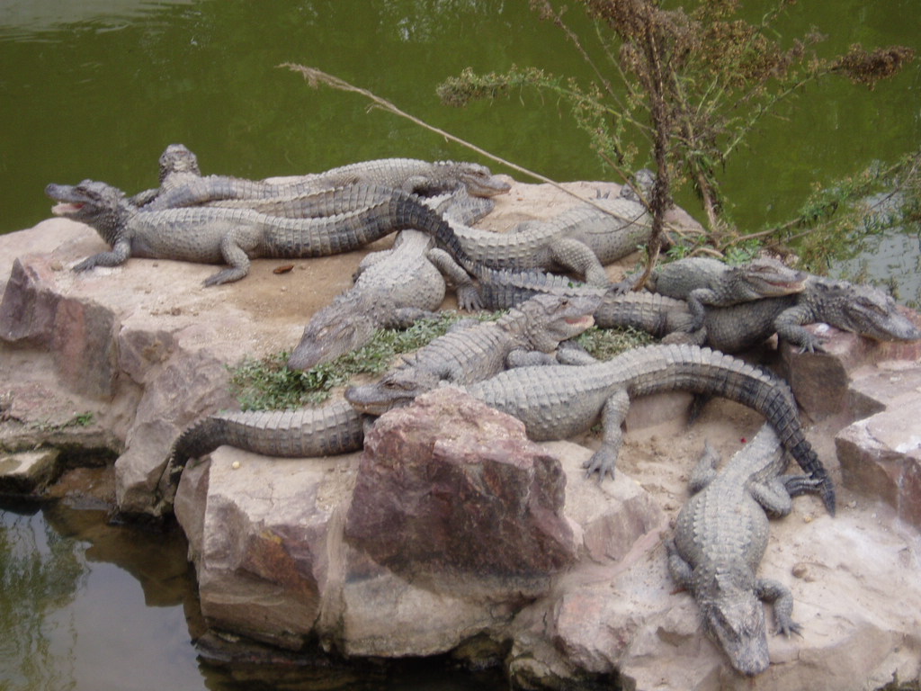 上海野生動(dòng)物園的鱷魚島現(xiàn)有揚(yáng)子鱷31條。