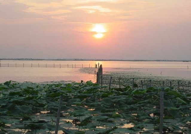 陽(yáng)澄湖位于蘇州市區(qū)的東北,跨蘇州市區(qū)、工業(yè)園區(qū)、昆山市及常熟市,是江蘇省重要的淡水湖泊之一。面積120平方公里,約18萬(wàn)畝,分西湖、東湖。它南連蘇州城,北鄰常熟山,而大部分在吳縣市境內(nèi),就像它的名字一樣,陽(yáng)澄湖水質(zhì)澄清,陽(yáng)光透底遠(yuǎn)遠(yuǎn)望去,像一塊晶瑩的翡翠。泛舟湖上,微波蕩漾,仿佛人在畫(huà)中。