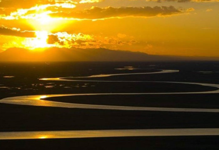 黃河流入后套平原,河面寬達(dá)三公里以上,水勢(shì)十分緩慢,河床上滿布沙洲、岔流,還有許多旋流,俗稱“破河”。黃河河水達(dá)洪水位時(shí),形成一片汪洋,不分干岔。這一段黃河的河道,極不穩(wěn)定,常向南北遷移,因此造成許多牛軛湖,俗稱“死河筒”。后套平原由耕地、草原和荒灘相間組成,渠道和林帶縱橫交織,形成黃河沿岸一個(gè)較為完備的排灌區(qū)。