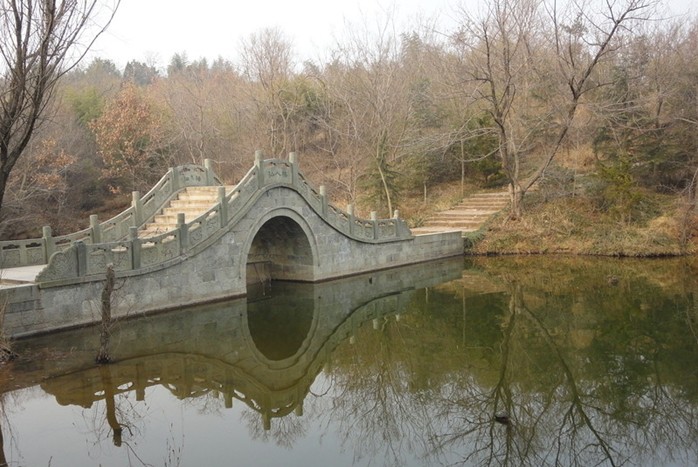 從群山中部沿徑北去,卻見(jiàn)一處兩峰對(duì)峙的關(guān)隘,關(guān)隘外是一片幽深開(kāi)闊的山澗,澗內(nèi)碧波蕩漾。老索說(shuō),這里相傳是唐代農(nóng)民起義軍首領(lǐng)黃巢大敗官軍的地方。黃巢憑借關(guān)隘之險(xiǎn),將官兵殺得潰不成軍,落荒而逃。如今,此關(guān)隘即稱“黃巢關(guān)”,此湖即名“黃巢湖”。歸來(lái)之后,我查閱了一下司馬光的《資治通鑒》和蔡?hào)|藩的《唐史演義》,均記述了唐乾符三年(公元876年)冬10月,黃巢“率眾渡淮,經(jīng)過(guò)潁、宋、徐、亳一帶”,連連取勝,之后又帶兵西進(jìn),“乘黃金輿,戎服兜鏊,昂然直入”長(zhǎng)安,正是其氣勢(shì)全盛時(shí)期,黃巢到馬陵應(yīng)該在這段時(shí)間。此外,相傳宋代抗金名將韓世忠曾3次在這里與金兵對(duì)壘,雙方在山谷間攻守爭(zhēng)奪,直殺得天昏地暗,血流泉赤,戰(zhàn)斗的慘烈可以想見(jiàn)。
