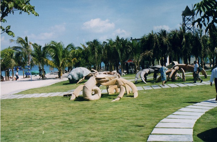 金沙角海灘 , 金牛奔海,靈龜石,雙玳浮波,開(kāi)天辟地,海誓山盟亭,貝殼長(zhǎng)廊,西島石刻,唐冠螺廣場(chǎng),穿山隧洞