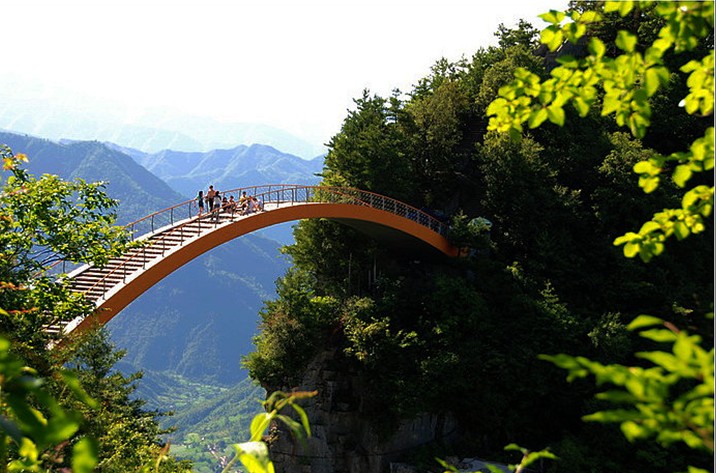 飛云渡是一座橫亙燕子埡壑口上空的全鋼結(jié)構(gòu)的觀景橋,這座鋼橋懸空高、跨度大,是亞洲海拔最高的景觀橋。登上燕天飛渡,變幻莫測的自然景觀,一眼望不到邊際的原始森林,是那樣令人驚奇和癡迷。兩岸老態(tài)龍鐘的黃楊,古樸郁香的巖柏,蒼勁挺拔的冷杉,翔于林間的走獸飛禽,一切是那樣的和諧寧靜,自在而安詳。