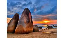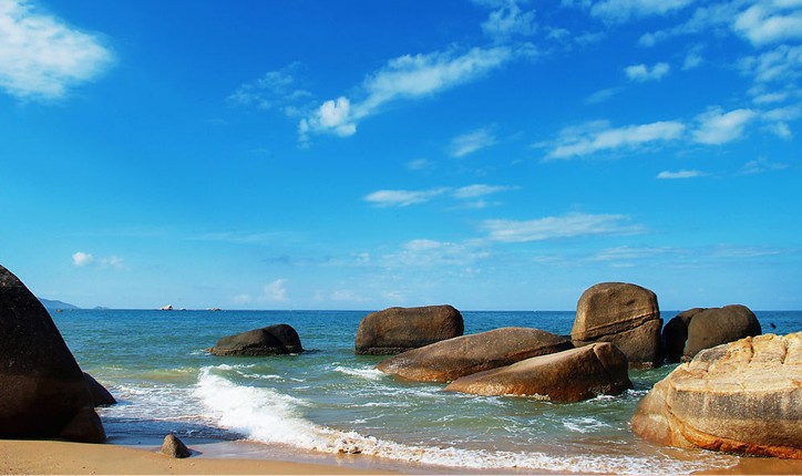 天涯海角游覽區(qū),位于三亞市區(qū)西南23公里處,陸地面積10.4平方公里,海域面積6平方公里,背負(fù)馬嶺山,面向茫茫大海,是海南建省20年第一亮麗品牌。這里海水澄碧, 煙波浩瀚,帆影點點,椰林婆娑,奇石林立水天一色。海灣沙灘上大小百塊石聳立,“天涯”、“海角”和“南天一柱”巨石突兀其間,昂首天外,崢嶸壯觀。 海上游樂項目多:海水浴場、釣魚臺、海上游艇、天涯購物寨、石沉大海漫游區(qū)、天涯畫廊、天涯民族風(fēng)情園、天涯歷史名人雕像、點火臺、望海閣、懷蘇亭、熱帶。