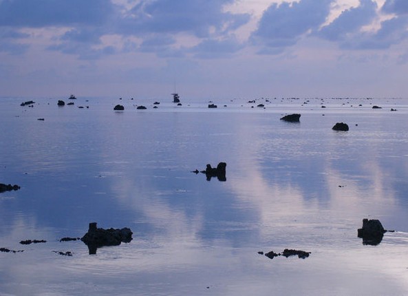 中沙大環(huán)礁是南海諸島中最大的環(huán)礁,全為海水淹沒(méi),水深一般9~26米。大環(huán)礁東側(cè)是深而大的地殼斷裂帶,陸殼和洋殼接觸處以51°~58°陡坡下降到4000米海盆上。大環(huán)礁南部與南沙群島的雙子群礁間海域,是南海最深處(-5559米),熱流量、布格重力和磁力都異常偏高,可能與陸塊漂移有關(guān)。中沙群島中的暗沙邊緣突起、彼此間的斷塊又不相聯(lián),因此造成許多獨(dú)立個(gè)體。斷缺部分成為出入□湖的天然水道。□湖內(nèi)亦散布有暗沙,其中以漫步暗沙最淺,僅9米。