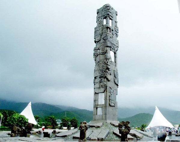 亞龍灣中心廣場,位于三亞市東南28公里處。廣場以圖騰柱向藍天升騰,以雕塑群向大地和大海延伸,其宏偉氣勢和獨特的藝術(shù)造型,以有限的藝術(shù)空間形式,引導(dǎo)我們的想象向無限的空間擴展。廣場外圍設(shè)計的五組白色風(fēng)帆式的尖頂帳篷及大型彩色噴泉,給具有古老文化意蘊的雕塑增添了現(xiàn)代氣息。
