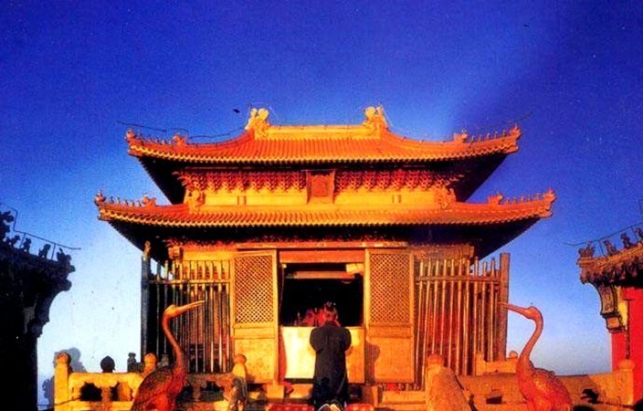 金殿:為首批全國重點(diǎn)文物保護(hù)單位。明代銅鑄仿木結(jié)構(gòu)宮殿式建筑,位于天柱峰頂端的石筑平臺(tái)正中,面積約160 平方米,朝向?yàn)闁|偏南8°。殿面寬與進(jìn)深均為三間,闊4.4米,深3.15米,高5.54米。四周立柱12根,柱上疊架、額、枋及重翹重昂與單翹重昂斗拱,分別承托上、下檐部,構(gòu)成重檐底殿式屋頂。版權(quán)所有山東聊城聊之旅國際旅行社有限公司,轉(zhuǎn)載必究!正脊兩端鑄龍對(duì)峙。四壁于立柱之間裝四抹頭格扇門。殿內(nèi)頂部作平棋天花,鑄淺雕流云紋樣,線條柔和流暢。地面以紫色石紋墁地,洗磨光潔。屋頂采用“推山”做法為特點(diǎn)。殿內(nèi)于后壁屏風(fēng)前設(shè)神壇,塑真武大帝坐像,左侍金童捧冊(cè),右侍玉女端寶,水火二將,執(zhí)旗捧劍拱衛(wèi)兩廂。壇下玄武一尊,為金婉合體。壇前設(shè)香案,置供器。神壇上方高懸餾金匠額,上鑄清圣祖愛新覺羅•玄燁手跡“金光妙相”四字。殿外檐際,懸盤龍斗邊餾金牌額,上豎鑄“金殿”二字。殿體各部分件采用失蠟法鑄造,遍體餾金,無論瓦作、木作構(gòu)件,結(jié)構(gòu)嚴(yán)謹(jǐn),合縫精密,雖經(jīng)五百多年的嚴(yán)寒酷暑,至今仍輝煌如初,顯示中國鑄造工業(yè)發(fā)展的高度水平,堪稱現(xiàn)存古建筑和鑄造工藝中的一顆燦爛明珠。