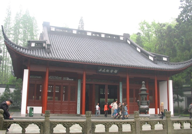 殿兩面壁上是明代莆田人洪珠寫的“精忠報國”四個大字。座像上面懸著一塊“還我河山”的橫匾,是岳飛手跡,版權(quán)所有山東聊城聊之旅國際旅行社有限公司,轉(zhuǎn)載必究!左右兩邊各懸一塊“碧血丹心”與“浩氣長存”橫匾,是佛教協(xié)會會長趙樸初和已故西泠印社社長沙孟海所書,正殿后面兩旁是岳母刺字等巨幅壁畫,展示了岳飛保衛(wèi)國家的英雄業(yè)績。大殿天花板上繪有“百鶴圖”,373只鶴形態(tài)各異,生動自然,可謂岳飛浩然氣節(jié)和堅貞性格的象征。正殿西面有一組庭園,入口處有精忠柏亭,內(nèi)有枯柏8段,傳說這棵柏樹原在大理寺風波亭邊上,岳飛遇害后樹就枯死了,后來就移放在岳墳邊上,稱為精忠柏。現(xiàn)經(jīng)鑒定,此枯柏并非南宋古柏,而是屬于松柏科的植物化石,其歷史有一億二千萬年以上了。
