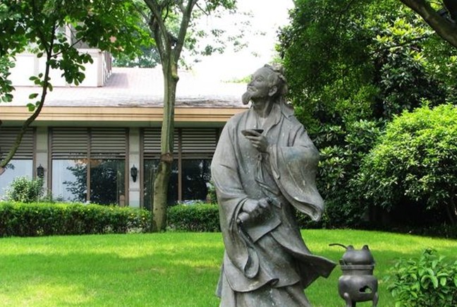 茶圣陸羽的仙風(fēng)道骨讓人駐足不前,遠(yuǎn)眺群山的陸羽,激發(fā)了人們對(duì)先賢的緬懷。茶博陸羽像為青銅制,高約2.5米,并配有低矮的茶桌,置茶爐、茶杯等品茗用具于上,陸羽則站立于旁,衣袂飄然,左手持一茶碗,右手持一茶書,回味著唇齒之間的茶香余韻,神態(tài)自若,氣勢(shì)生動(dòng)。
