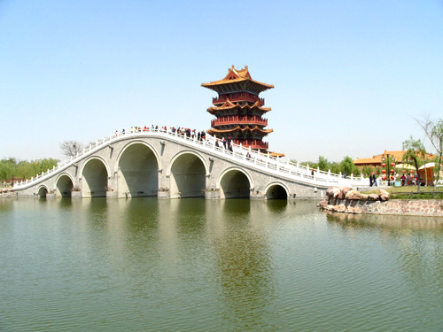 位于開封城西北部,與龍亭公園相鄰,是仿《清明上河圖》中所繪場景而建的一座大型文化主題公園。該園占地510畝,包括酒樓、茶肆、當(dāng)鋪以及制作汴繡、官瓷、年畫的作坊等,當(dāng)中還穿插有小雜耍、盤鼓等民間文藝表演。你還可以換穿宋裝,手持宋幣,盡情感受宋人的生活習(xí)俗,領(lǐng)略北宋的盛世繁榮。