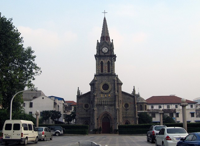 始建于清同治十一年(1872年),光緒二十五年(1899年)增建鐘樓。整個建筑由教堂、鐘樓、主教公署藏經(jīng)樓以及附屬用房組成,具有典型的哥特式建筑風格。它具有較高的歷史、文化、藝術價值,也是當年法帝國主義入侵中國的重要見證。