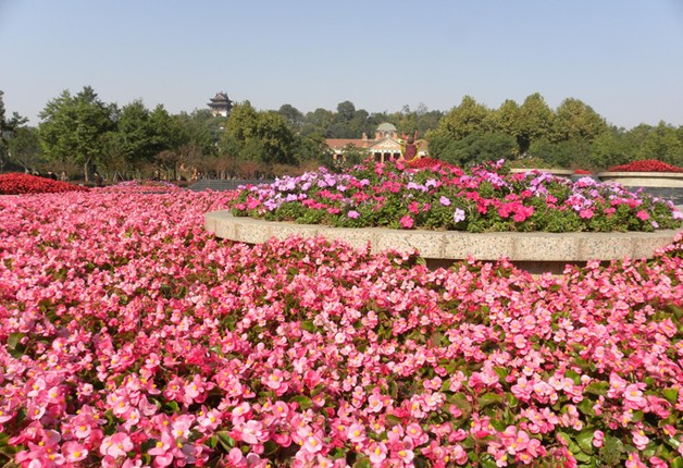 另外,由于武漢夏季時間長且氣候炎熱,大面積采用白色、黃色主色調(diào)的花卉,給人以清涼明快的感覺;而冬季氣溫低,采用紅色、紫色主色調(diào)的花卉,營造溫暖熱烈的氣氛。