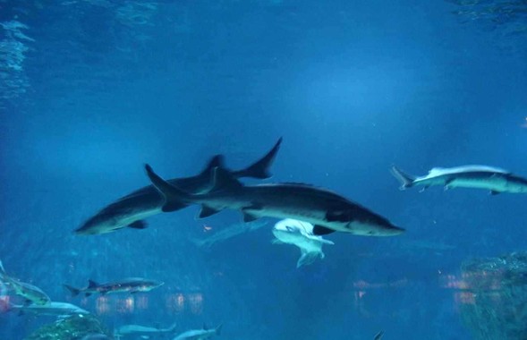 園中展館陳列著中華鱘及其相關(guān)標(biāo)本。版權(quán)所有山東聊城聊之旅國(guó)際旅行社有限公司,轉(zhuǎn)載必究!從標(biāo)本上看,中華鱘與白鱘的外型非常容易區(qū)分,而與長(zhǎng)江鱘卻很相似,從外觀上看只是個(gè)體較小些。中華鱘個(gè)體碩長(zhǎng),成魚(yú)體長(zhǎng)可達(dá)五米,體重超過(guò)千斤,可以說(shuō)是長(zhǎng)江里的“魚(yú)王”。中華鱘體形仿錘狀,長(zhǎng)著掃帚式的尾巴,身披五行骨板——背部一行,體側(cè)和腹部各有二行,象不象武士的胄甲!而白鱘的“鼻子”很長(zhǎng),身上沒(méi)有骨板,是不是很好區(qū)分?1982年,中華鱘同大熊貓一樣,被國(guó)家列為一級(jí)保護(hù)動(dòng)物,譽(yù)稱(chēng)“水中熊貓”。