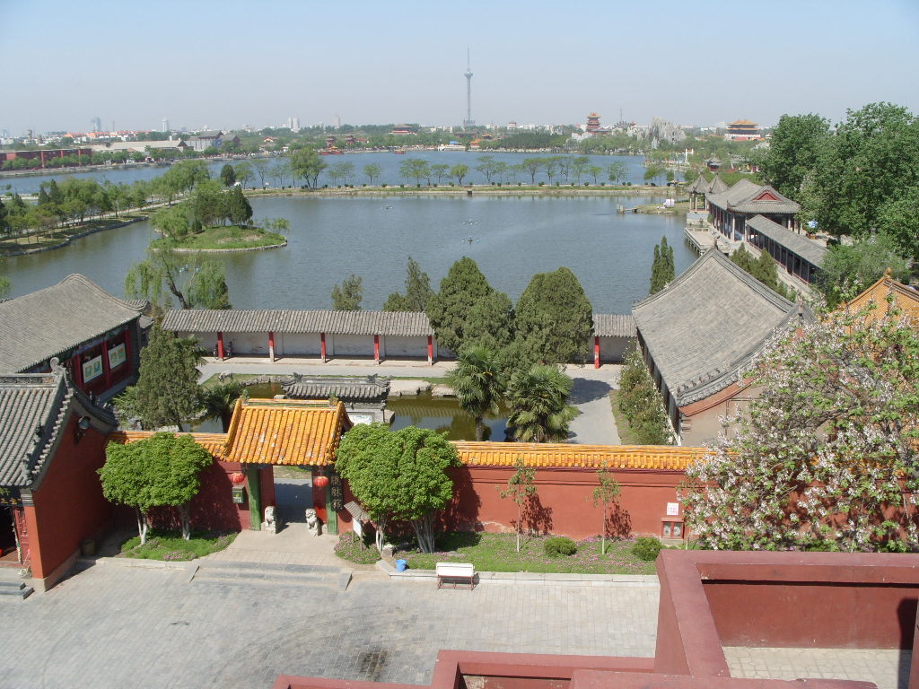 大殿是木結構,重檐歇山式建筑,很壯觀。游人登上平臺,入殿觀看陳列的文物后,多在石欄前眺望開封古城景色。龍亭前有一條筆直的大道,道旁有兩個東西對峙的湖,東為潘湖,西為楊湖。傳說,東湖為宋朝“太師”潘仁美的府第,他陷害忠良,是個奸臣,宅院里的湖水是渾的;西湖為宋朝抗遼名將楊業(yè)的府第,他舍身救國,是個忠臣,宅院里的湖水是清的。這個說法沒有科學根據(jù),但反映了人們對忠奸的態(tài)度和感情。現(xiàn)在龍亭,潘、楊兩湖,以及龍亭后面的假山花園,都辟為龍亭公園。