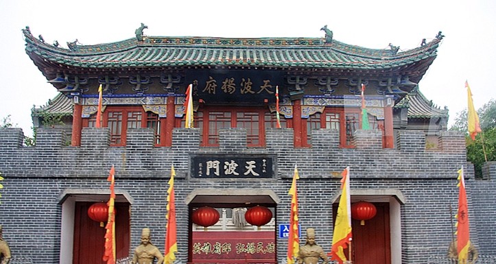 天波楊府位于風(fēng)景秀麗的河南省開封市楊家湖畔,東依北宋皇宮遺址龍亭風(fēng)景區(qū),西臨中國翰園和清明上河園。占地2.6公頃,是為紀(jì)念和頌揚北宋忠臣楊家諸將業(yè)績,于1994年重建的一座仿宋園林樓閣建筑。據(jù)史書記載,天波楊府是北宋抗遼名將楊業(yè)的府邸,因位于京城西北隅天波門的金水河旁,故名天波楊府。