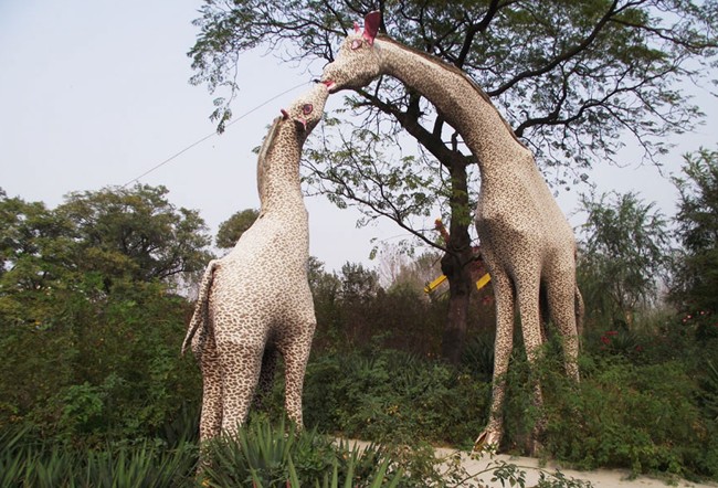 游覽區(qū)有槐樹、蒼松、綠椰等各種樹木20多萬株,翠竹10余萬株,綠化面種占90%以上。有桃花林、櫻花林、槐花林?;ɑ軈^(qū)有牡丹園、月季園、玫瑰園、菊花園等,百花競放,姹紫嫣紅。動物放養(yǎng)區(qū),養(yǎng)有駱駝、鴕鳥、山羊、銀雞、孔雀、鶴等,供游人觀賞逗趣。新建的滑草坡、情人橋、逍遙島、月亮湖、千秋湖等景觀。船停碧波上,人在畫中游。還設(shè)有菊花培育基地,培植各種菊花精品。