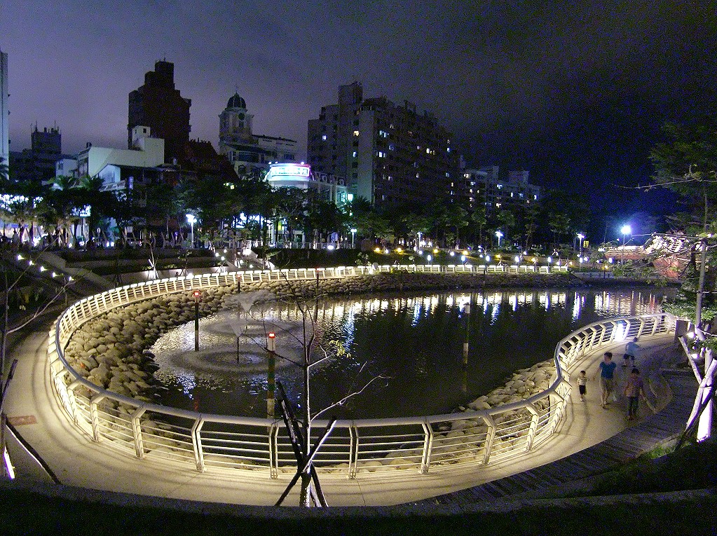 七賢橋:在「冥想欄桿」旁,輕輕松松把手肘架在上頭,托腮冥想,就可以打發(fā)夏日午后時(shí)光。其間老榕樹蒼勁 有力,庇蔭過客,東岸一座年逾半百的老汲水井,可以讓孩子們一窺阿嗎時(shí)代的地下水來源,入夜后,牛郎織女加上十二星座的星光親水臺,更添浪漫。