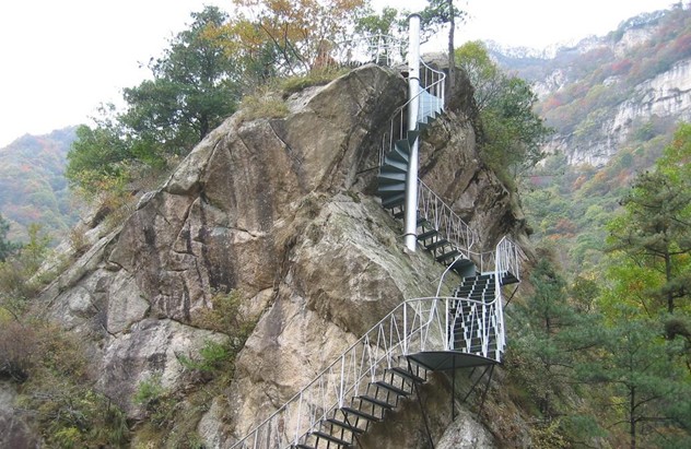 龍峪灣有紅幢溝、黑龍谷、青石峽、磨子壕、八間凹 、牛角窯、羚羊巢、斷山壕等幽谷20余條。云山廝磨,幽遠(yuǎn)深邃,青嶂連空,極目無(wú)際。仰觀天象,煙嵐騰騰,如置身云海;俯瞰谷底,一線茫茫,覺(jué)怵目驚心。谷旁、澗邊多有怪石嶙峋,如人似獸,千姿百態(tài)。如“垂釣石”,站立河中,平面光潔,狀如臺(tái)桌,登其上可小憩觀瀑,著棋垂釣。距其 1米處,河中心有一層次分明的天然石塔,上臥石鳥(niǎo),引頸望水,似觀魚(yú)蝦遨游,名“鸞鳥(niǎo)觀魚(yú)塔”。落葉松林盡頭,山門開(kāi)處,怪石直矗,上坐彌勒,閉目合十,面壁入定,稱為“彌佛坐禪”。還有龍爪石、累卵石臥牛石、蒼鷹石、伏虎石、蛤蟆石、天柱石等皆以其形象而命名。
