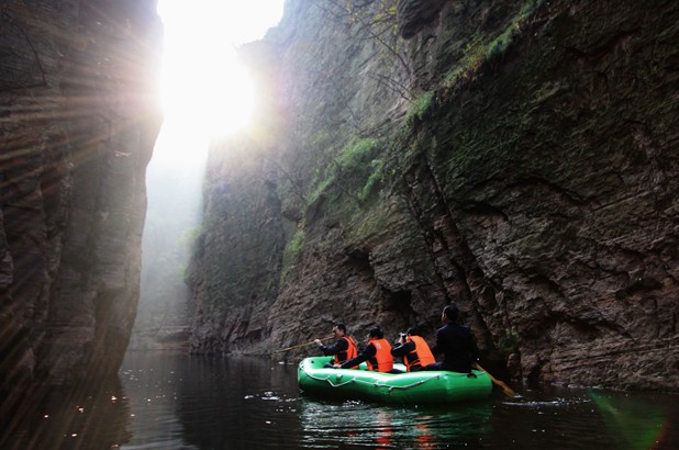 龍?zhí)洞髰{谷是洛陽(yáng)黛眉山世界地質(zhì)公園的核心景區(qū),是一條以典型的紅顏掌故群地質(zhì)地貌景觀為主的峽谷景區(qū)。谷內(nèi)關(guān)峽相望,潭瀑連珠,壁立萬(wàn)仞,峽秀谷幽,經(jīng)過(guò)12億年的地質(zhì)沉淀合260萬(wàn)年的水流切割旋蝕所形成的高峽甕谷、山崩地裂奇觀,堪稱世界一絕,人間少有。享有“中國(guó)嶂谷第一峽”、“古海洋天然博物館”、“峽谷絕品”和“黃河山水畫(huà)廊”等美名。