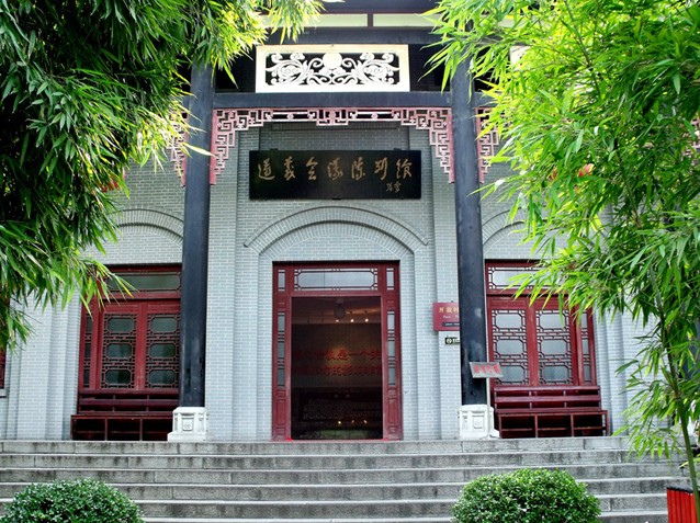 在遵義老城子尹路(原名琵琶橋)東側(cè),原為黔軍25軍第二師師長(zhǎng)柏輝章的私人官邸,修建于30年代初。整個(gè)建筑分主樓、跨院兩個(gè)部分。主樓為中西合璧,臨街有八間鋪面房,當(dāng)年為房主經(jīng)營(yíng)醬菜及顏料紙張。鋪面居中有一小牌樓(會(huì)址大門臨街),大門正中高懸巨匾,那是毛澤東于1964年11月題寫的黑漆金匾,上有“遵義會(huì)議會(huì)址”六個(gè)大字,蒼勁有力,金碧輝煌。(此為毛澤東為全國(guó)革命紀(jì)念地題字的唯一一處)。街面房連接主樓與跨院之間有一座青磚牌坊。牌坊上方用碎藍(lán)瓷鑲嵌著“慰廬”二字。牌坊的另一面有“慎篤”二字。