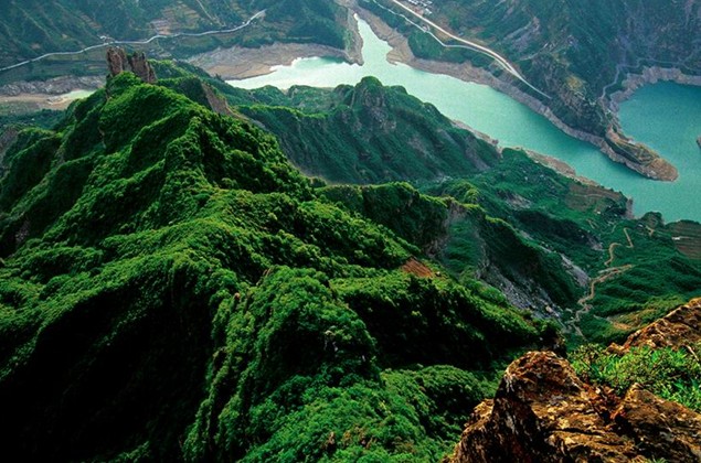 關(guān)山的地貌雄險(xiǎn)壯觀,自北而南,從1600多米的中山直落而下,與華北平原直接相交,在山前形成整體連通巨嶂,其雄深之勢非泰岳可比,其峻極之形與華岳抗衡。從平原北望,遠(yuǎn)觀儼然一座巨型石拔地而起,東西橫延20多公里,近觀更覺氣勢磅礴,撼人心扉。