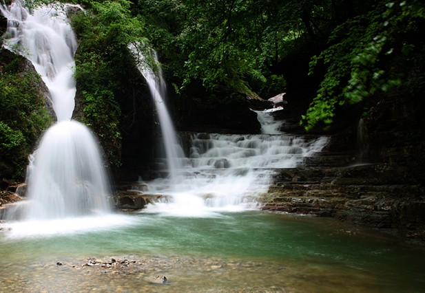 小西天女性俗神信仰聞名遐邇。有廟宇三處殿堂40余座,香火極盛,四季有善男信女祈求國泰民安,家庭幸福。人文景觀被美麗的自然山水所包容襯托,仙脂峽既有北方山水的雄奇,又有南國山水的秀雅。主要景點有西蓮寺、天孕潭、演水壁、群瀑溝、蓮花洞、后靜宮、煉石灘、天門。全國首創(chuàng)的帳篷客棧在仙脂峽中。