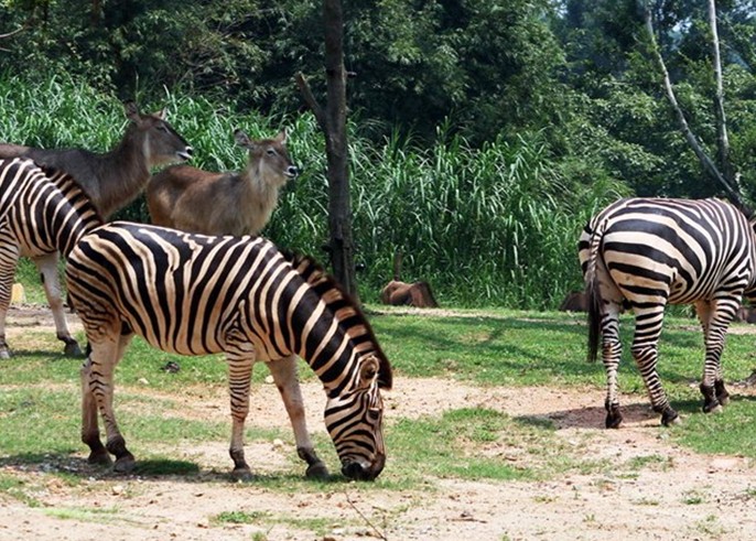集中在螺峰山東面和北面。主要大型動物有:西雙版納野牛、亞洲象、孟加拉虎、白虎、金錢豹、云豹、東北虎、華南虎、美洲獅、非洲獅、非洲斑馬、角馬、黑猩猩、駱駝、長頸鹿、梅花鹿、黑鹿、斑羚、黑熊、馬熊等。原來的大熊貓也在此展出。