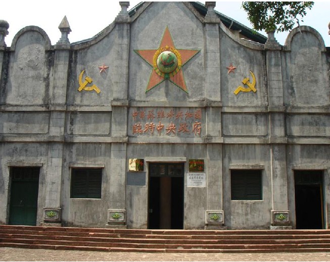 1931年9月28日,毛澤東和朱德指揮根據(jù)地軍民粉碎了敵人第一、二、三次“圍剿”,在葉坪村建立、發(fā)展和鞏固中央革命根據(jù)地。1931年11月7-20日,在此召開第一次中華蘇維埃共和國工農(nóng)兵代表大會,通過了《憲法大綱》 、《勞動法》、《土地法》及經(jīng)濟政策等重要決議,宣告中華蘇維埃共和國成立,毛澤東為主席。