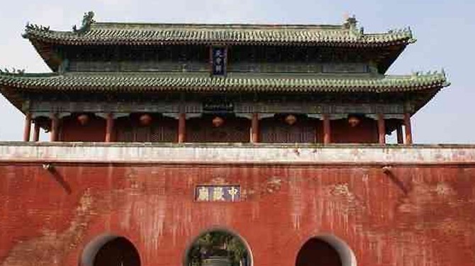 中華門中岳廟的前門,原名“名山第一坊”,為木建牌樓,1942年改建為磚瓦結(jié)構(gòu)的原廡殿式牌坊,更名為“中華門”。門額內(nèi)外分別寫有“依嵩”、“帶潁”、“嵩峻”、“天中”八字,簡要地說明了中岳廟所處的地理位置。