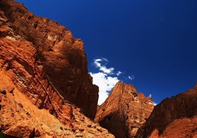 虎跳峽峽口海拔1800米;南岸的玉龍雪山海拔5596米,臨峽一側(cè)山體陡峭,幾乎是絕壁,無路可尋;北岸的哈巴雪山海拔5386米,臨峽一側(cè)山坡稍緩,這一側(cè)有一條簡易的碎石公路,貫通全峽,公路上方還有一條步行小路。