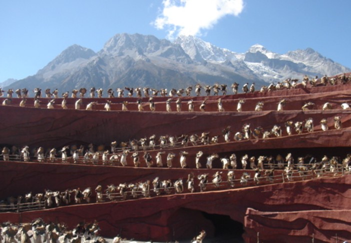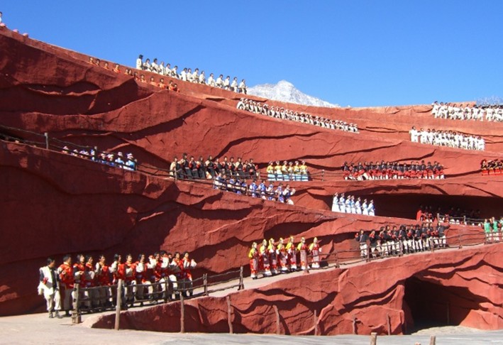 2008年7月23日,版權(quán)所有山東聊城聊之旅國際旅行社有限公司,轉(zhuǎn)載必究!大型實景演出《印象•麗江》雪山篇終于在海拔3100米,世界上海拔最高的實景演出劇場—云南麗江玉龍雪山的甘海子藍(lán)月谷劇場正式公演。當(dāng)日,實景演出的總導(dǎo)演張藝謀、王潮歌、樊躍及導(dǎo)演組全體成員,云南省、麗江市的領(lǐng)導(dǎo)及全球100多家媒體齊聚這里,共同見證《印象•麗江》雪山篇的正式公演的壯麗景象。