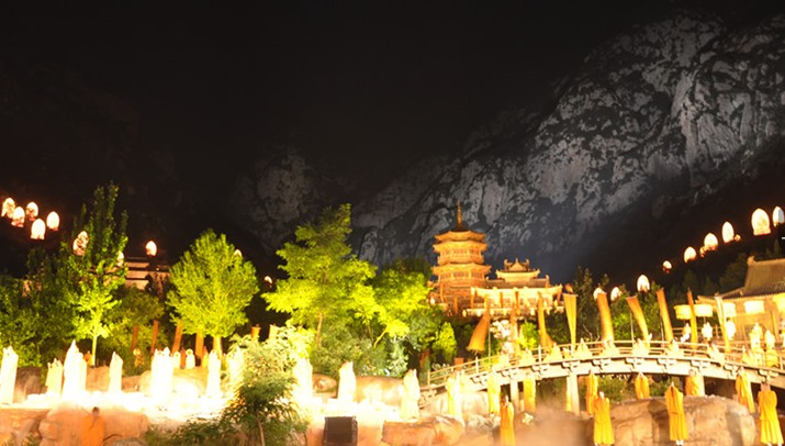 千米大佛頌和諧。在演出尾聲部分,版權所有山東聊城聊之旅國際旅行社有限公司,轉(zhuǎn)載必究!主創(chuàng)人員設計了一個特殊的章節(jié):用燈光把作為演出背景的少室山連天峰打成一尊大佛,由于距離遠、面積大、山體不平整等原因,觀眾一直無緣見到這尊“大佛”,如今演出方斥資300萬元進行科研攻關,使大佛特效呈現(xiàn)。