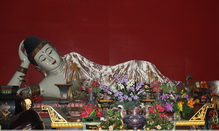穿過天王殿,其后有大雄寶殿。殿內(nèi)供奉著釋迦牟尼、阿彌陀佛、藥師佛的神像,屏墻后面懸塑觀音像,兩側(cè)有十八羅漢侍立。大雄寶殿之后,又有藏經(jīng)閣藏書八百萬卷,這是寺僧藏經(jīng)說法的場所。殿前甬道有明萬歷年間鑄造的大鐵鐘一口,重約650公斤。藏經(jīng)閣的東南面是禪房,是僧人參禪打坐的地方,對面的西禪房,則是負責(zé)接待賓客的堂室。