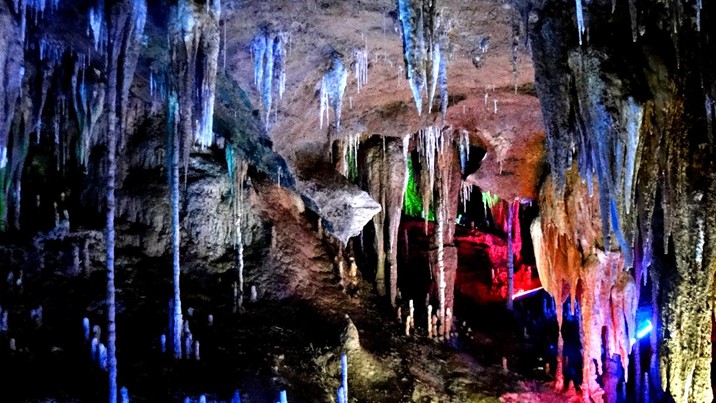 洞府云天絕世景觀,其上下高達(dá)80米的層樓空間結(jié)構(gòu),規(guī)模宏大、布局天成。它上下映照,水路遙相呼應(yīng),各種石鐘乳在五顏六色的燈光照耀下層次清晰,令人嘆為觀止。